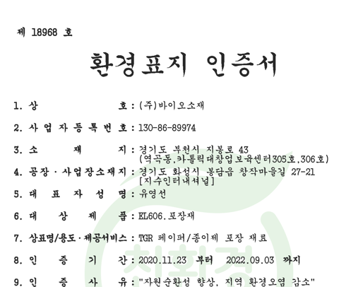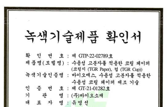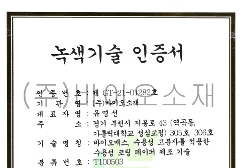 ³ì»ö±â¼úÀÎÁõ(GT-18-00515) : ¹°¿¡ ³ì´Â ¼ö¿ë¼º »ýºÐÇØ ÄÚÆÃ Á¾ÀÌ