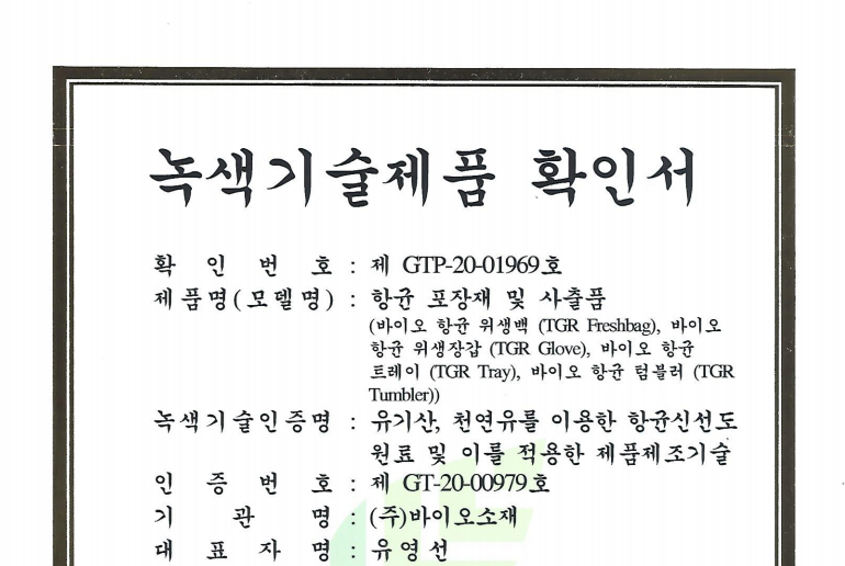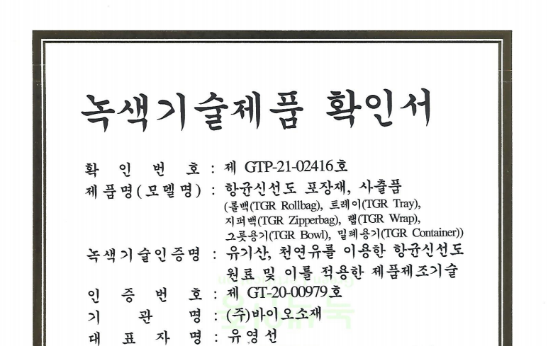 ³ì»ö±â¼úÁ¦Ç°(GTP-20-01969): Ç×±Õ Æ÷ÀåÀç ¹× »çÃâǰ(À§»ý¹é,À§»ýÀå°©,Æ®·¹ÀÌ µî)