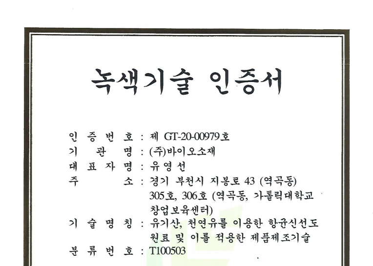 ³ì»ö±â¼úÀÎÁõ(GT-20-00979) : À¯±â»ê,õ¿¬À¯¸¦ ÀÌ¿ëÇÑ Çױսż±µµ ¿ø·á ¹× Á¦Ç°Á¦Á¶