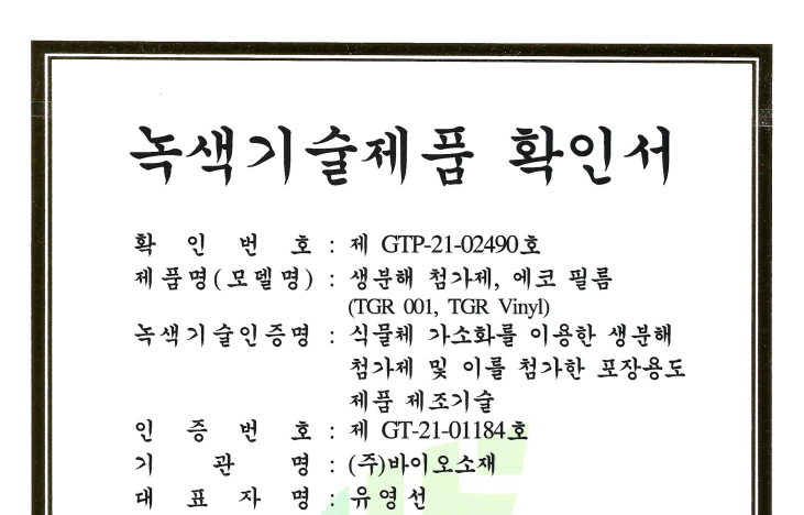 ³ì»ö±â¼úÀÎÁõ(GT-21-01184) :½Ä¹°Ã¼ °¡¼Òȸ¦ ÀÌ¿ëÇÑ »ýºÐÇØ ÷°¡Á¦ ¹× Æ÷Àå¿ëµµÁ¦Ç°