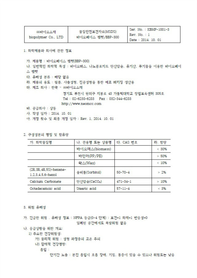 | 2 | MSDS : ¹ÙÀÌ¿Àº£À̽º Æç·¿ (BBP-300) | ![]() |