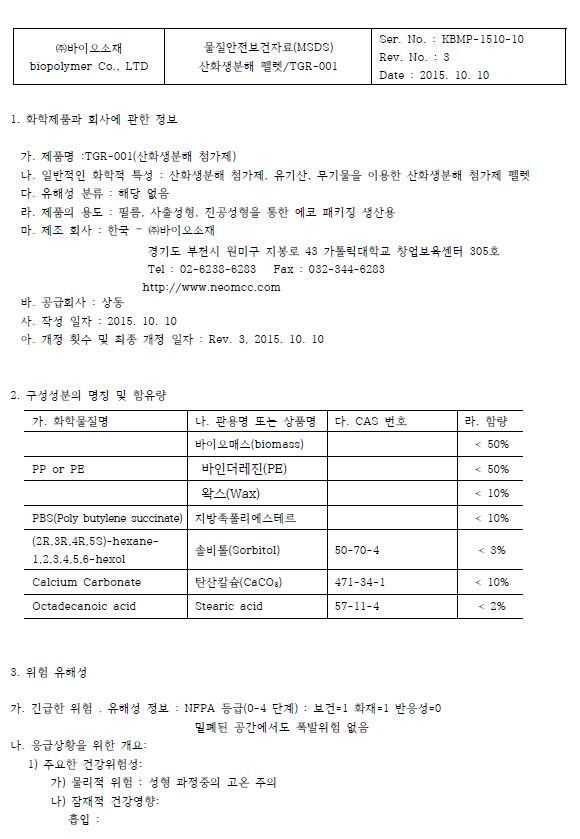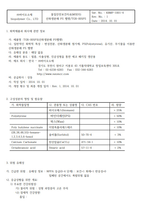| 10 | MSDS : »ýºÐÇØ Ã˸ÅÁ¦ (TGR-005PS) | ![]() |