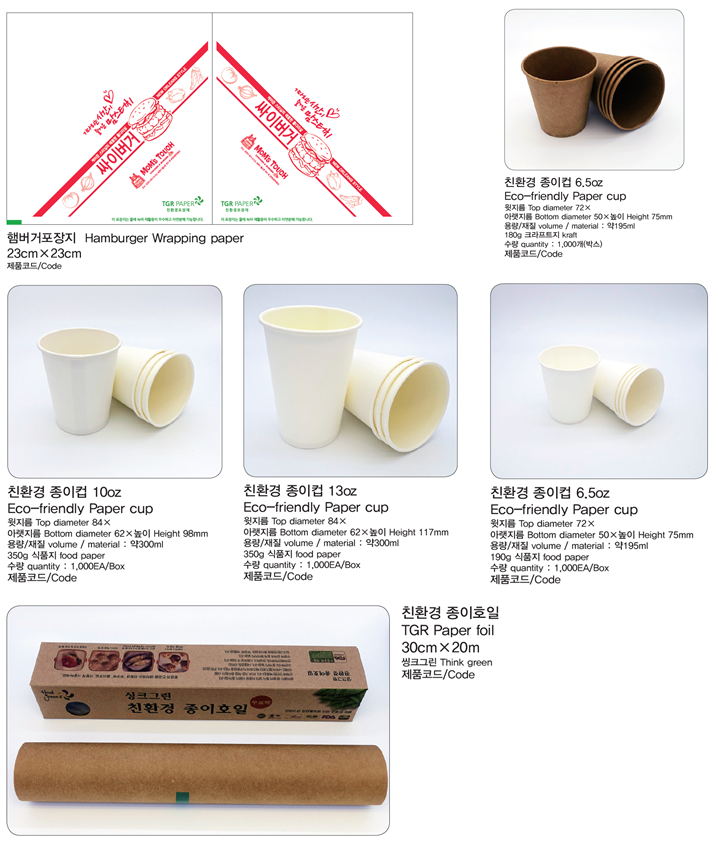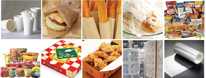 ∙ Food packaging : Hamburger, Donut, Gimbap etc ∙ Paper cup, Ramen cup etc ∙ Additional Functionality : Anti insect, Freshness, Anti bacterial
