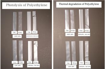 Pictures of PE base bio films after UV and heat treatment