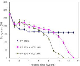 Changes in elongation of PP based bio film during heat Treatment(68¡¾2¡É, RH 85%)
