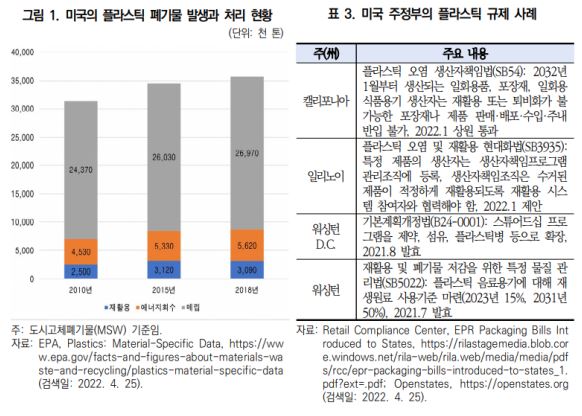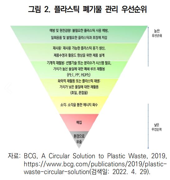 1. ¹è°æ Àü ¼¼°èÀûÀ¸·Î ÇÃ¶ó½ºÆ½ »ý»ê·®°ú Æó±â¹° ¹ß»ý·®Àº ´Ã¾î³ª°í ÀÖÀ¸³ª ÀçȰ¿ë·üÀº 9%¿¡ ºÒ°ú.1) ÇÃ¶ó½ºÆ½ »ý»ê·®Àº 2000³â 2¾ï 3,400¸¸ Åæ¿¡¼ 2019³â 4¾ï 6,000¸¸ ÅæÀ¸·Î Å©°Ô ´Ã¾ú°í, °°Àº ±â°£ ÇÃ¶ó½ºÆ½ Æó±â¹° ¹ß»ý·®Àº 1¾ï 5,600¸¸ Åæ¿¡¼ 3¾ï 5,300¸¸ ÅæÀ¸·Î µÎ ¹è ÀÌ»ó Áõ°¡Çß´Ù. Äڷγª19·Î ÀÎÇÑ ºÀ¼âÁ¶Ä¡·Î 2020³â Àü ¼¼°è ÇÃ¶ó½ºÆ½ »ç¿ë·®Àº Àü³â´ëºñ 2.2% °¨¼ÒÇÏ¿´À¸³ª, °æ±â ȸº¹°ú ÇÔ²² ÇÃ¶ó½ºÆ½ »ç¿ëÀÌ ´Ù½Ã ´Ã¾î³¯ °ÍÀ¸·Î Àü¸ÁµÇ¸ç, ƯÈ÷ ÀÇ·áºÎ¹®À̳ª °³ÀÎÀ§»ý¿ë ÇÃ¶ó½ºÆ½ Á¦Ç°, ÀüÀÚ»ó°Å·¡ µîÀÇ ºÎ¹®¿¡¼ Æ÷ÀåÀç ÇÃ¶ó½ºÆ½ »ç¿ëÀÌ ´Ã¾î³ª´Â Ãß¼¼´Ù. ÇÑÆí Àü ¼¼°è ÇÃ¶ó½ºÆ½ Æó±â¹°ÀÇ ÀçȰ¿ë·üÀº 9%¿¡ ºÒ°úÇϸç, ÀçȰ¿ëµÇÁö ¾ÊÀº ÆóÇÃ¶ó½ºÆ½Àº ¸Å¸³ (50%), ¹«´ÜÅõ±â(22%), ¼Ò°¢(19%)ÀÇ ¹æ½ÄÀ¸·Î 󸮵ǰí ÀÖÀ¸¸ç, ÇÃ¶ó½ºÆ½ Æó±â¹°Àº ÁÖ·Î Æ÷ÀåÀç(40%), ¼ÒºñÀç(12%), ¼¶À¯(11%) µîÀ¸·ÎºÎÅÍ ¹ß»ýÇϰí ÀÖ´Ù. ȼ®¿¬·á¸¦ ÀÌ¿ëÇÑ ÇÃ¶ó½ºÆ½ »ý»ê, ȯ°æÀûÀ¸·Î °ÇÀüÇÏÁö ¾ÊÀº Æó±â¹° ó¸®, ÇØ¾çÀ¸·Î À¯ÀÔµÈ ÆóÇÃ¶ó½ºÆ½°ú ¹Ì¼¼ÇÃ¶ó½ºÆ½ µîÀº ½É°¢ÇÑ È¯°æ ¹× °æÁ¦Àû ¹®Á¦¸¦ ÃÊ·¡. Àü ¼¼°èÀûÀ¸·Î 2019³â ÇÃ¶ó½ºÆ½ »ý»ê°ú ¼Òºñ °úÁ¤ Àü¹Ý¿¡¼ ¾à 18¾ï ÅæÀÇ ¿Â½Ç°¡½º°¡ ¹èÃâµÇ¾ú°í, ÀÌ Áß 90%´Â ȼ®¿¬·á·ÎºÎÅÍÀÇ »ý»ê ¹× Àüȯ °úÁ¤¿¡¼ ¹ß»ýÇß´Ù.2) ƯÈ÷ ÇÃ¶ó½ºÆ½Àº ÇØ¾çÆó±â¹°ÀÇ 80%¸¦ Â÷ÁöÇϴµ¥, ÇØ¾ç ÇÃ¶ó½ºÆ½ Æó±â¹°Àº 2016³â ¿¬ 900¸¸~1,400¸¸ Åæ¿¡¼ 2040³â ¿¬ 2,300¸¸~3,700¸¸ Åæ±îÁö Áõ°¡ÇÒ °ÍÀ¸·Î Àü¸ÁµÈ´Ù.3) ÇÃ¶ó½ºÆ½ À¯ÀÔÀ¸·Î ÀÎÇÑ È¯°æ¿À¿°Àº »ýÅÂ°è ¹× ÀηùÀÇ °Ç°À» À§ÇùÇÒ »Ó ¾Æ´Ï¶ó Æó±â¹° ó¸®¿Í ¿À¿° º¹±¸¸¦ À§ÇÑ Ãß°¡ÀûÀÎ ºñ¿ëÀ» À¯¹ßÇϸç, ¼ö»ê¾÷, °ü±¤¾÷ µî¿¡µµ ¿µÇâÀ» ¹ÌÄ£´Ù. ÃÖ±Ù °³ÃÖµÈ Á¦5Â÷ À¯¿£È¯°æÃÑȸ(UNEA-5)´Â 2024³â±îÁö ÇÃ¶ó½ºÆ½ ¿À¿°À» ¹æÁöÇϱâ À§ÇÑ ±¸¼Ó·Â ÀÖ´Â ÃÖÃÊÀÇ ±¹Á¦Çù¾à Á¦Á¤¿¡ ÇÕÀÇÇÏ¿´À¸¸ç, ´ÙÀÚÇùÀÇü ¹× °³º° ±¹°¡ Â÷¿ø¿¡¼µµ ÇÃ¶ó½ºÆ½ÀÇ »ý»ê¡¤À¯Å롤¼Òºñ¡¤ÀçȰ¿ë ¹× Æó±â¹° ó¸® µî Àü ¼ö¸íÁֱ⿡ °ÉÃÄ ¼øÈ¯¼ºÀ» °³¼±ÇÏ´Â Á¶Ä¡¸¦ ¸¶·ÃÇϰí ÀÖ´Ù. ÃÖ±Ù ¿ì¸®³ª¶óµµ ¡®»ýȰÆó±â¹° Å»(÷)ÇÃ¶ó½ºÆ½ ´ëÃ¥¡¯, ¡®Çѱ¹Çü(K)-¼øÈ¯°æÁ¦ ÀÌÇà°èȹ¡¯ µîÀ» Åä´ë·Î ÇÃ¶ó½ºÆ½ »ç¿ëÀ» ±Ùº»ÀûÀ¸·Î ÁÙÀ̰í, °íǰÁú ÀçȰ¿ëÀ» ´Ã¸®´Â ¹æ¾ÈÀ» ÃßÁøÇϰí ÀÖ´Ù. ÀÌ¿¡ º» °í¿¡¼´Â ÇÃ¶ó½ºÆ½ÀÇ »ý»ê°ú ¼ÒºñÀÇ Áö¼Ó°¡´É¼ºÀ» ³ôÀ̱â À§ÇÑ ±¹Á¦»çȸÀÇ Á¤Ã¥ µ¿ÇâÀ» »ìÆìº¸°í ½Ã»çÁ¡À» µµÃâÇϰíÀÚ ÇÑ´Ù. 1) OECD(2022), Global Plastic Outlook, https://www.oecd-ilibrary.org/environment/global-plastics-outlook_de747aef-en(°Ë»öÀÏ: 2022. 4. 18). 2) Ibid. 3) UNEP(2011), From pollution to solution, https://wedocs.unep.org/bitstream/handle/20.500.11822/36963/POLSOL.pdf(°Ë»öÀÏ: 2022. 4. 18) 2. ±¹Á¦»çȸÀÇ ÇÃ¶ó½ºÆ½ ±ÔÁ¦ ÇöȲ °¡. ´ÙÀÚÇù·Â 2022³â 2¿ù 28ÀÏ~3¿ù 2ÀÏ ÄÉ³Ä ³ªÀ̷κñ¿¡¼ °³ÃÖµÈ Á¦5Â÷ À¯¿£È¯°æÃÑȸ(UNEA-5)¿¡ Âü¼®ÇÑ 175°³ ȸ¿ø±¹Àº 2024³â ¸»±îÁö ÇÃ¶ó½ºÆ½ ¿À¿° ¹®Á¦¸¦ ÇØ°áÇϱâ À§ÇØ ±¸¼Ó·Â ÀÖ´Â ÃÖÃÊÀÇ ±¹Á¦Çù¾àÀ» Á¦Á¤ÇÏ´Â ³»¿ëÀÇ °áÀǾÈ4)À» äÅÃ. ȸ¿ø±¹µéÀº 2021³â 9¿ù ¸£¿Ï´Ù¿Í Æä·ç°¡ Á¦ÃâÇÑ °áÀÇ¾È ÃʾÈ(ÇÃ¶ó½ºÆ½ Àü ¼ö¸íÁֱ⿡ °ÉÄ£ ±¹Á¦Çù¾à)°ú 2021³â 12¿ù ÀϺ»ÀÌ Á¦ÃâÇÑ °áÀÇ¾È ÃʾÈ(ÇØ¾ç ÇÃ¶ó½ºÆ½ Æó±â¹°¿¡ °üÇÑ ±¹Á¦Çù¾à)À» Åä´ë·Î Çù»óÀ» ÁøÇàÇÏ¿© ÇÃ¶ó½ºÆ½ ¹®Á¦¸¦ Á¾ÇÕÀûÀ¸·Î ´Ù·ç´Â ±¹Á¦Çù¾àÀ» Á¦Á¤Çϱâ·Î ÇÕÀÇÇß´Ù.5) UNEA-5 °³ÃÖ¿¡ ¾Õ¼ WWF, Ellen MacArthur Foundation µîÀº ȯ°æÀû¡¤°æÁ¦Àû °üÁ¡¿¡¼ ±¹Á¦ ÇÃ¶ó½ºÆ½ Çù¾àÀÇ Çʿ伺À» °Á¶ÇÏ´Â º¸°í¼¸¦ ¹ßÇ¥ÇÏ¿´°í, 100¿© °³ÀÇ ÇÃ¶ó½ºÆ½ ¼ÒÀ硤Á¦Ç°¡¤À¯Åë ±â¾÷, Æó±â¹° 󸮱â¾÷, ±ÝÀ¶±â°ü µîÀº ÇÃ¶ó½ºÆ½ ±¹Á¦Çù¾à Á¦Á¤À» ÁöÁöÇÏ´Â °øµ¿¼º¸íÀ» ¹ßÇ¥Çß´Ù.6) À̹ø¿¡ äÅÃµÈ °áÀǾȿ¡ µû¸£¸é ÇâÈÄ Á¦Á¤µÉ ÇÃ¶ó½ºÆ½ ±¹Á¦Çù¾à¿¡´Â ÇÃ¶ó½ºÆ½ Àü Áֱ⿡ °ÉÄ£ ÅëÇÕÀûÀÎ Á¢±Ù°ú ±¹°¡º° º¸°í(reporting), ´ÙÀÚ±â±ÝÀ» Æ÷ÇÔÇÑ Àç¿ø Á¶´Þ ¸ÞÄ¿´ÏÁò»Ó ¾Æ´Ï¶ó °³µµ±¹¿¡ ´ëÇÑ ¿ª·®¹è¾ç, ±â¼ú, ÀçÁ¤ Áö¿ø¿¡ °üÇÑ »çÇ× µîµµ Æ÷Ç﵃ °ÍÀ¸·Î º¸ÀδÙ. ÇöÀç ÇÃ¶ó½ºÆ½¿¡ °üÇÑ ±¹Á¦ °Å¹ö³Í½º´Â ¿À¿°¹æÁö, »ý¹°´Ù¾ç¼º, ÈÇй°Áú, Æó±â¹° ±³¿ª µî°ú °ü·ÃµÈ ¿©·¯ °³ÀÇ Çù¾à¿¡¼ ºÎºÐÀûÀ¸·Î ´Ù·ïÁö°í Àִ¹Ù, ÇÃ¶ó½ºÆ½ Àü Áֱ⿡ °ÉÄ£ ¿À¿°¹æÁö¸¦ À§Çؼ´Â ÅëÇÕÀûÀÎ °Å¹ö³Í½º°¡ ÇÊ¿äÇÏ´Ù. (±Û»óÀÚ ¹× Ç¥ 1 Âü°í). À×°Å ¾Èµ¥¸£¼¾ UNEP »ç¹«ÃÑÀåÀº ÇÃ¶ó½ºÆ½ ±¹Á¦Çù¾